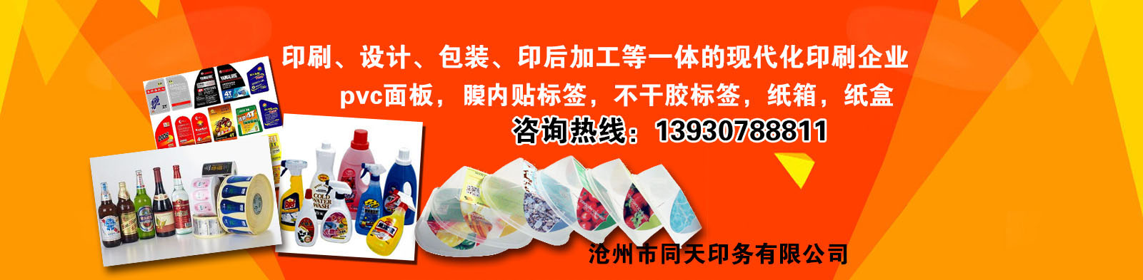 沧州市同天印务有限公司是集印刷、设计、包装、印后加工等一体的现代化印刷企业。我公司成立于2002年,拥有世界先进印刷设备,专业生产加工吸塑纸卡,pvc面板,膜内贴标签,不干胶标签,纸箱,纸盒,防伪标签等。公司产品远销海外,亚洲(日本、马来西亚、新加坡、印度尼西亚)欧洲(乌克兰、德国)大洋洲(新西兰)北美洲(加拿大、美国、墨西哥)同天以其精美的印品和完美的售后服务在业界赢得较高的知名度。我公司尊崇“踏实、拼搏、责任”的企业精神,并以诚信、共赢、开创经营理念,创造良好的企业环境,以全新的管理模式,完善的技术,周到的服务,卓越的品质为生存根本,我们始终坚持用户至上 用心服务于客户,坚持用自己的服务去打动客户?;队鹘缗笥演傲傥夜静喂?、指导和业务洽谈......
